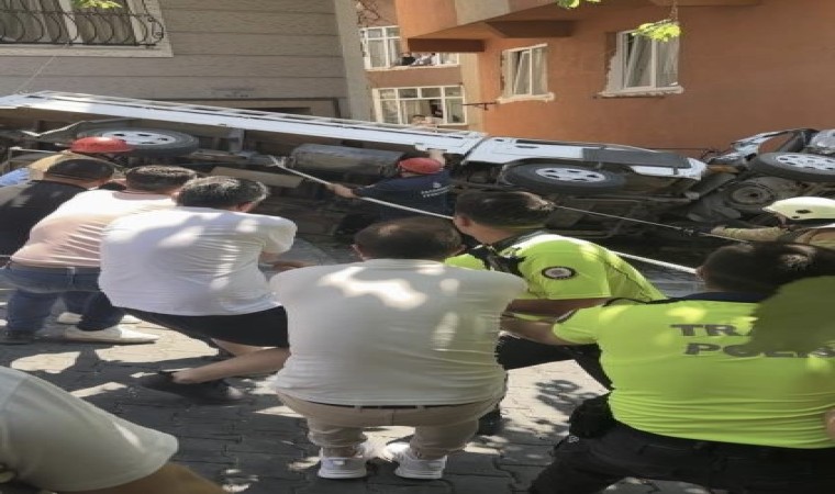 Sesleri duyan çevredeki vatandaşların ihbarı üzerine olay yerine itfaiye, sağlık ve polis ekibi sevk edilmişti. Kısa sürede olay yerine gelen itfaiye ekipleri, sıkışan sürücüyü kurtarma çalışmalarına başlamıştı. Çalışmalar sırasında polis ekipleri güvenlik şeridi çekerek sokağı trafiğe kapatırken, sağlık ekipleri de hazırda beklemişti. İtfaiye ekipleri sürücüyü kurtarmak için kamyonetin diğer tarafına geçmişti.