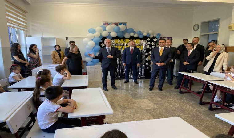 Sınıflara giden İstanbul Valisi Gül ve beraberindekiler öğrencilere karnelerini vererek hediyeler verdi.