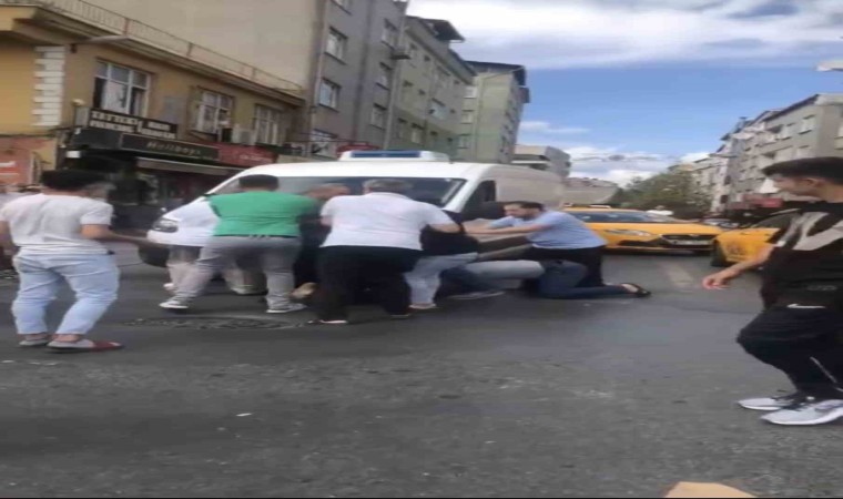 Beyoğlu’nda iki aracın kazaya karışması sonrası baba ve oğluna 7 kişi birden saldırdı. Ortalığı karıştığı kavgada baba ve oğlu darpla yaralanırken, polis tarafları gözaltına aldı. Yaşananlar cep telefonu kamerasına anbean yansıdı.