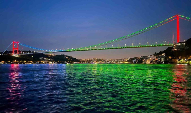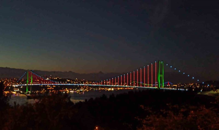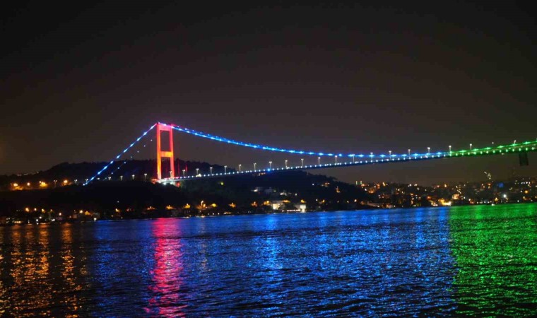 Azerbaycan’ın Bağımsızlık Günü olan 28 Mayıs’ta İstanbul Boğazı’ndaki köprüler, Azerbaycan bayrağının renkleri olan kırmızı, mavi ve yeşil renklerle ışıklandırıldı.
