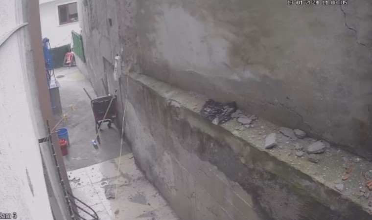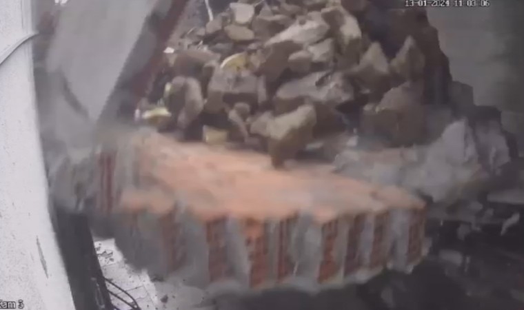Kağıthane’de bir inşaat alanında çalışma yapan kepçen, duvarı yıkarak yerle bir etti. Yıkılan duvar yan binanın zemin kattaki dairesinin camını ve korkuluklarını kırdı. Olay anı kameralara anbean yansırken, zabıta ekipleri maddi hasarla atlatılan olayla ilgili çalışma başlattı.