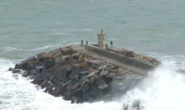 Meteoroloji İşleri Genel Müdürlüğünün uyarılarının ardından Marmara Bölgesi’nde kuvvetli sağanak yağış ve lodos etkisini sürdürüyor. İstanbul’da sabah saatlerinde etkili olan kuvvetli Rüzgar ve sağanak yağmur bazı vatandaşlara zor anlar yaşatırken Anadolu Yakası’nda bulunan bazı ilçelere mevsimin ilk karı yağdı. Arnavutköy’de bulunan Karaburun Sahili’nde de dalga boyu metrelerce yüksekliğe ulaştı. Dalga kıranın boyunu zaman zaman geçen dalgalar böyle görüntülendi. Balıkçılar yüksek dalga boyu nedeniyle denize açılmakta zorlandı. Bazı vatandaşlar dalgaların boyunu aştığı dalga kıranın üzerine çıkarak fotoğraf çekilmeye çalıştı.