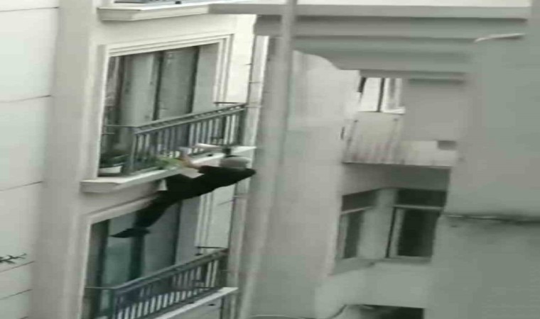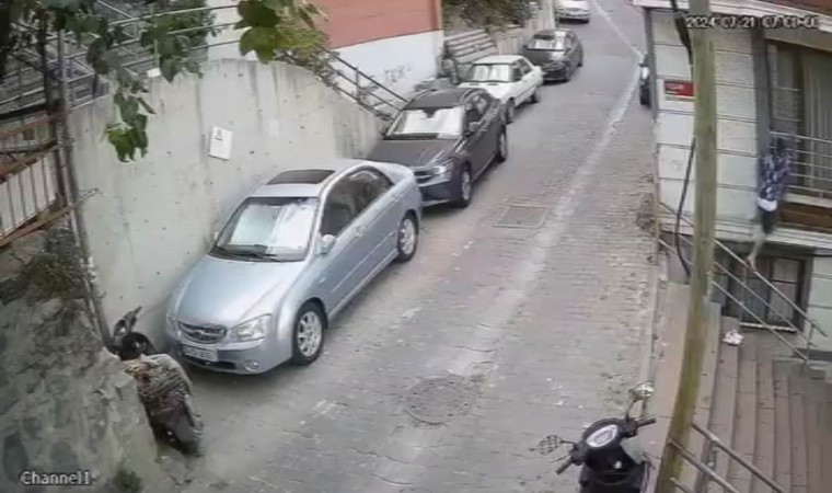 İstanbul’un Beyoğlu ilçesi Sururi Mehmet Efendi Mahallesi’nde dün sabah saatlerinde yaşanan olayda sokak üzerinde bulunan bir apart oteli gözüne kestiren hırsız, yukarıya tırmandı. Şahıs ardından girdiği odadan çanta çalarak aşağıya attı. Hırsızın korkululardan sarkıp çantayı attı o anlar kameralara yansıdı.