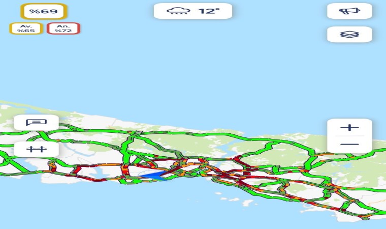 iBB Cep Trafik uygulamasında trafik yoğunluğunun, saat 07.45 sıralarında yüzde 69’a kadar çıktığı görüldü.