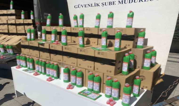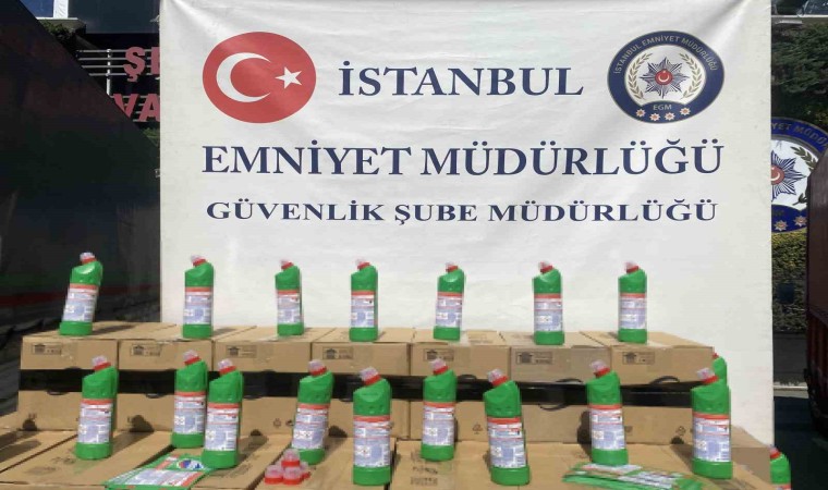 İstanbul Emniyet Müdürlüğü Güvenlik Şube Müdürlüğünce, İstanbul Anadolu Cumhuriyet Başsavcılığı koordinesinde, “T.C.K.’nın 185. maddesine ve 6769 Sayılı Kanuna Muhalefet” suçları ile ilgili çalışmalar yürütüldü. 5 Ağustos tarihinde İstanbul’un Tuzla ilçesinde, halk sağlığını tehlikeye düşürür nitelikte imal edilmiş ürünler olduğu ve piyasaya sürülmek üzere paketlendiğinin belirlenmesi üzerine tespiti yapılan adrese operasyon gerçekleştirildi. Operasyon neticesinde 1 şüpheli yakalandı. Adreste yapılan aramalarda, piyasa değeri yaklaşık 2 milyon 880 bin lira olan 80 bin adet etiket, bin adet şişe kapağı, 500 adet doluma hazır boş şişe, 10 bin 920 adet dolumu tamamlanmış çamaşır suyu olmak üzere toplamda 92 bin 420 temizlik ürünü ve bileşenine el konuldu. Yakalanan ürünler İstanbul Emniyet Müdürlüğü Vatan yerleşkesine sergilendi. Yakalanan şüpheli şahsın emniyetteki işlemleri sürüyor.