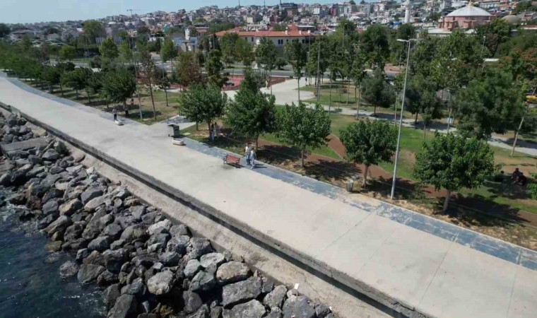 Fatih’te bunaltan sıcak hava nedeniyle park ve sahil boş kaldı. Günün her saatinde hareketli olan Çatladıkapı Sahili’ndeki park ve bahçelerin sakin hali havadan görüntülendi.