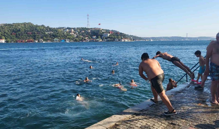 İstanbul’da sıcaktan bunalan vatandaşlar soluğu sahillerde aldı. Arnavutköy Sahili serinlemek isteyen ve kendini denize atanlarla doldu.
