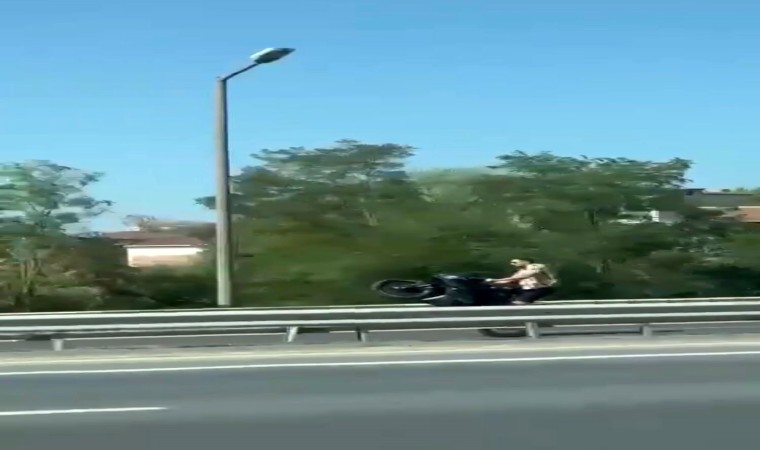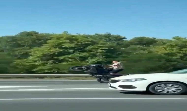 Bir diğer trafik magandası da Fatih Sultan Mehmet Köprüsü’nde insanların hayatını hiçe saydı. Motosikletiyle ilerleyen sürücü bir anda hem kendi hayatını hem de diğer sürücülerin hayatını umursamadan önünü kaldırarak uzun süre tek tekerlek üstünde ilerledi. Diğer araç sürücülerinin şaşkın bakışlarıyla birlikte tek tekerlek üstünde giden trafik magandası saniyeler içinde gözden kayboldu. O anlar yan şeritte seyreden sürücünün kamerası tarafından kaydedildi.