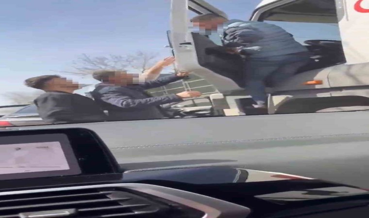 Sancaktepe’de bir tır sürücüsü ile araç sürücü yine trafikte yol verme tartışması nedeniyle burun buruna geldi. Kısa süreli yaşanan tartışmanın ardından aracından inmek isteyen tır sürücüsünü tartışma yaşadığı diğer sürücünün arkadaşları sakinleştirdi. Olayın ardından iki sürücü araçlarına binerek yola devam etti. O anlar bir başka sürücünün cep telefonu kamerasına yansıdı.