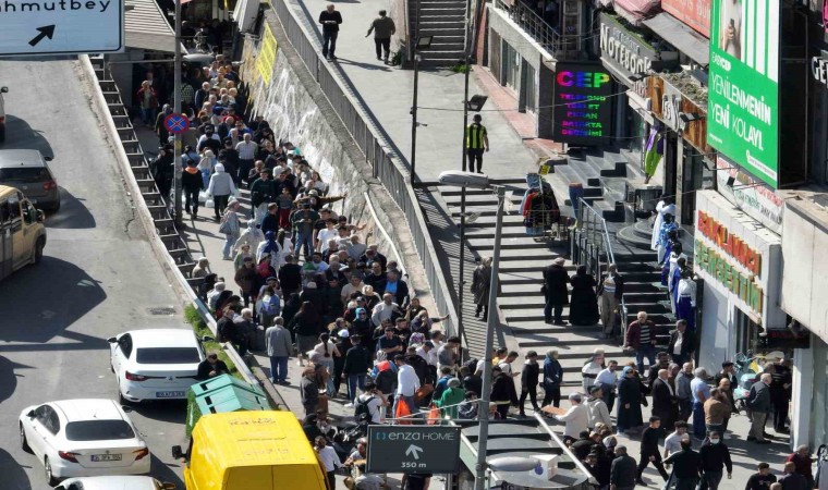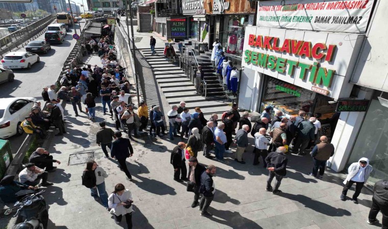Şirinevler’de bayram nedeniyle ucuz baklava yemek isteyen vatandaşlar uzun kuyruklar oluşturdu. Yaklaşık 1 saat boyunca kuyrukta bekleyen vatandaşların oluşturduğu yoğunluk havadan çekilen görüntülere yansıdı.