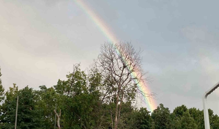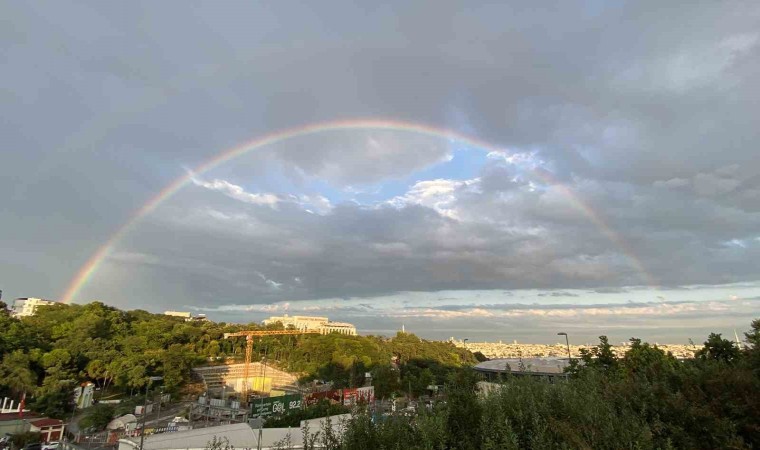 İstanbul’da akşam saatlerinde etkili olan kısa süreli yağışın ardından oluşan gökkuşağı hayran bıraktı.