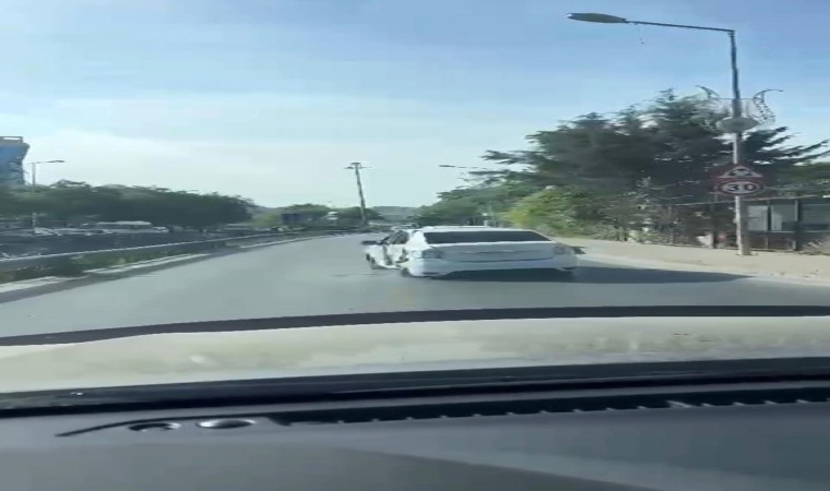 Kağıthane’de kaza yapan ağır hasarlı bir araçla yanlayarak trafikte ilerleyen sürücü izleyenleri hayrete düşürdü. Aracın düzgün bir şekilde şeritte ilerleyemediğini gören sürücüler ise güvenliklerini sağlamak için uzaklaşmayı tercih etti. Trafikte yaşanan o ilginç anlar bir sürücünün cep telefonu kamerasına yansıdı.