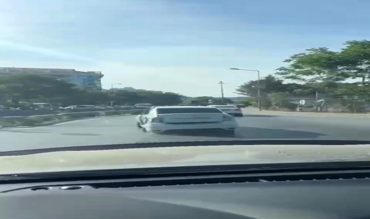 Geçtiğimiz günlerde Kağıthane Güzeldere Caddesi’nde yaşanan olayda bir sürücü, ağır hasarlı kazalı aracıyla trafikte seyir halinde ilerlerken görüldü. Aracın yan bir şekilde ilerlemesi ise caddede bulunan trafiği tehlikeye düşürdü. Ayrıca aracın seyir halindeyken plakasız olduğu da dikkatlerden kaçmazken, her kasisten geçişte bagajının açılması da ortaya ilginç görüntüler çıkardı. Diğer sürücüler kendi canlarını tehlikeye atmamak için hasarlı araçtan uzaklaşmaya çalışsalar da caddenin daralan yollarında birkaç kez ciddi şekilde kaza tehlikesi atlattıldı. Görenlerin bu kadarı da ‘pes’ dediği olayı bir başka sürücü cep telefonu kamerasıyla saniye saniye kaydetti.