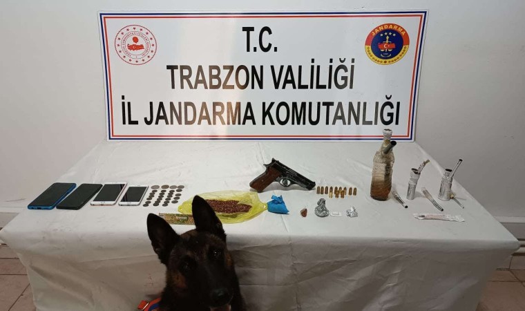 Trabzon İl Jandarma Komutanlığı ekiplerince yapılan çalışmalar sonucu Arsin ilçesindeki Çubuklu Mahallesi’nde A.İ.A. isimli şahsın adli makamlarca 8 ayrı suçtan arandığı ve İstanbul’dan kaçarak ailesine ait köy evinde saklandığı tespit edildi. Jandarma Dedektifleri (JASAT) ve Jandarma Kaçakçılıkla Mücadele Timlerinin yapmış olduğu operasyonda hakkında 4 ayrı uyuşturucu, 3 ayrı hırsızlık ve 1 silahlı tehdit suçundan arama kaydı bulunan şüpheli A.İ.A. gözaltına alınırken, evde yapılan aramada ise 6 gram bonzai yapımında kullanılan hammadde, 60 gram bonzai, 9 gram metamfetamin, 1 adet sentetik uyuşturucu, 7 adet uyuşturucu kullanım aparatı, 1 adet ruhsatsız tabanca, 14 adet fişek ve 27 adet tarihi sikke ele geçirildi.