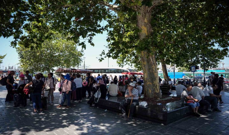 İstanbul’da sıcak hava dalgası bugün de etkisini sürdürüyor. Nem oranının arttığı mega kentte, sıcaktan bunalan vatandaşlar gölgelik alanlara sığınırken bazı vatandaşların ise yelpazeler ile serinlemeye çalıştığı dikkat çekti.