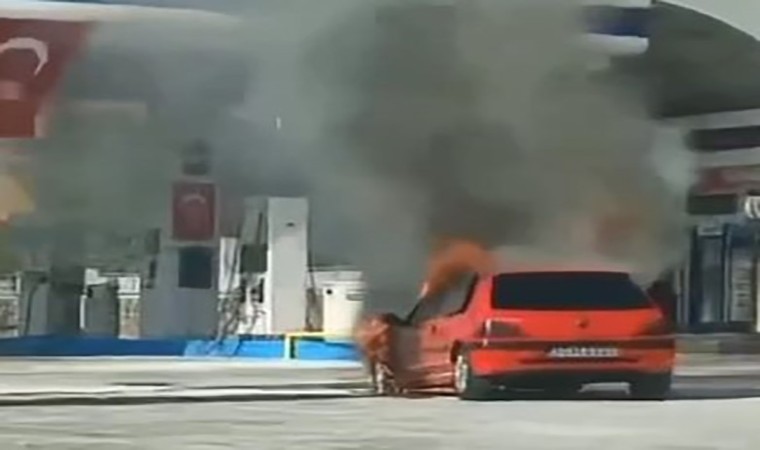 Kırşehir’de, akaryakıt almak için istasyonda duran otomobil bir anda alev aldı.