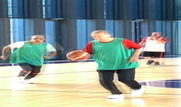 Görüntüler, Cumhurbaşkanı Erdoğan’ın kondisyon bisikletinde ısınmasıyla başlıyor. Cumhurbaşkanlığı Külliyesi’ndeki maçlarda Erdoğan, Gençlik ve Spor Bakanı Osman Aşkın Bak, Çalışma ve Sosyal Güvenlik Bakanı Vedat Işıkhan, MİT Başkanı İbrahim Kalın, Cumhurbaşkanlığı İletişim Başkanı Fahrettin Altun, eski bakanlar Mevlüt Çavuşoğlu, Mehmet Muharrem Kasapoğlu ve Mustafa Varank, AK Parti İzmir Milletvekili Alpay Özalan, Gençlik ve Spor Bakan Yardımcısı Hamza Yerlikaya ile Türkiye Basketbol Federasyonu (TBF) Başkan Vekili Ömer Onan’ın yer aldığı görülüyor.