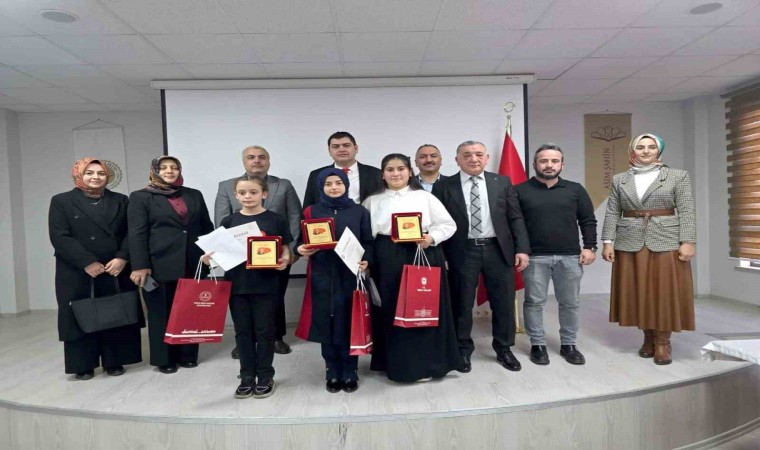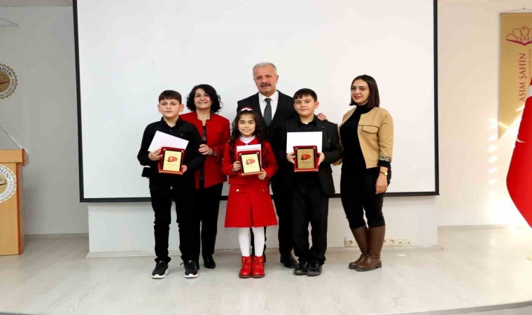 Yarışmada birinci olan Şehit Erkan Sakal İlkokulu öğrencisi Rabia Zümra Yüceal, ikinci olan Altınyayla Alparslan İlkokulu öğrencisi Halit Can Uğur ve üçüncü olan Kangal Atatürk İlkokulu öğrencisi Mehmet Kaan Kuyucu’ya ödüllerini Yener takdim etti.