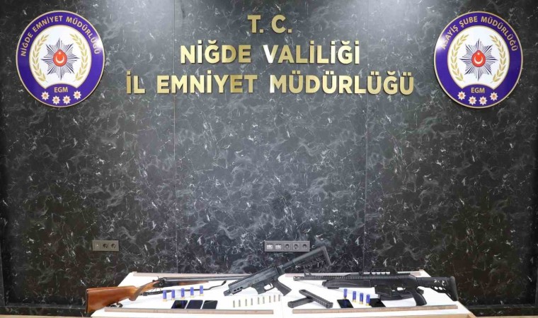 Niğde’de geçtiğimiz günlerde meydana gelen işyerinin kurşunlanması olayı ile ilgili Niğde İl Emniyet Müdürlüğü ekipleri tarafından yapılan çalışmalar neticesinde olayın şüphelisi 4 şahıs yakalanarak gözaltına alındı. Asayiş Şube Müdürlüğü ekiplerinin titiz çalışmaları sonucu kimlikleri ve adresleri tespit edilen şahıslar; Niğde ve Nevşehir’deki evlerine ve işyerlerine yapılan operasyonda yakalanarak gözaltına alındı. Şahısların ve işyerinde yapılan aramalarda 2 adet ruhsatsız tüfek, 1 adet otomatik silah ve silaha ait 2 adet şarjör, 18 adet fişek, 5 adet kayıt dışı cep telefonu ele geçirildi.