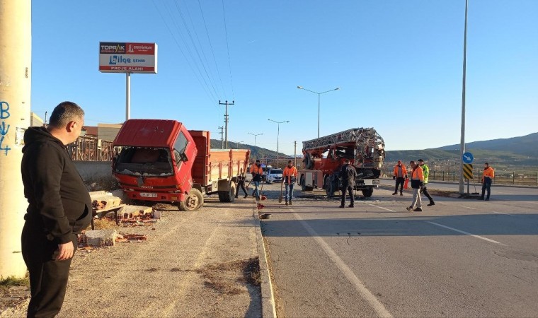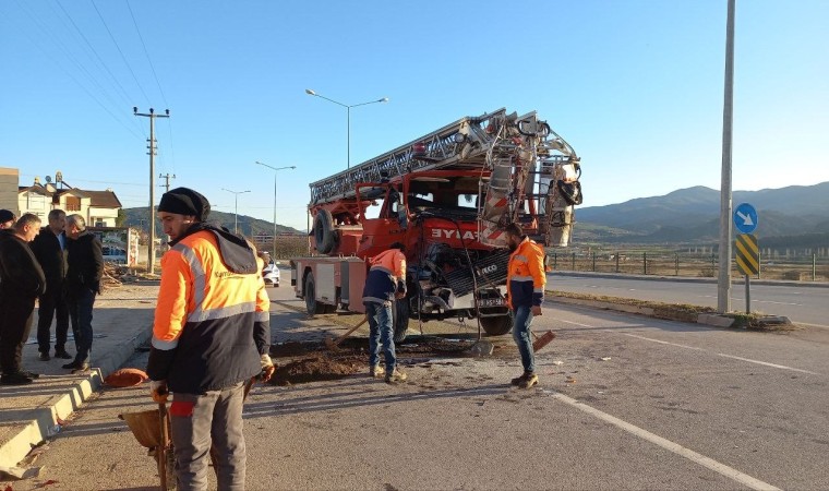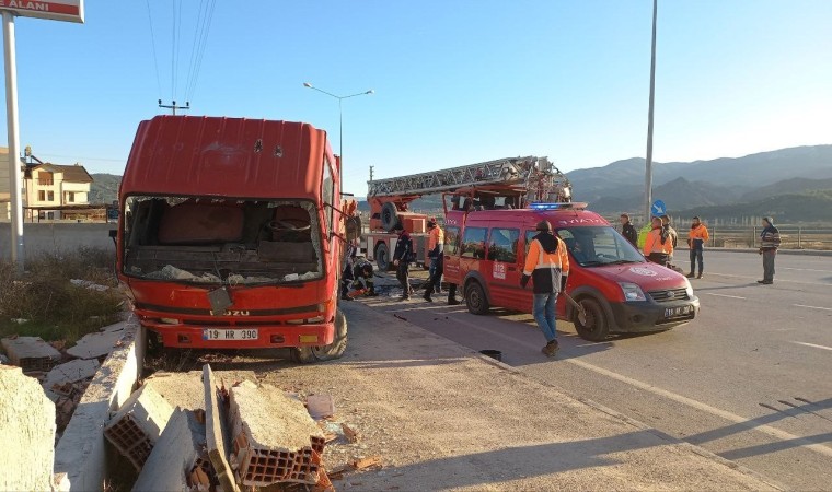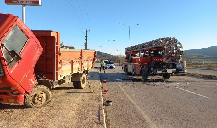 Çorum’un Osmancık ilçesinde itfaiye aracının park halindeki kamyonete çarptığı kazada 2 itfaiye eri yaralandı.