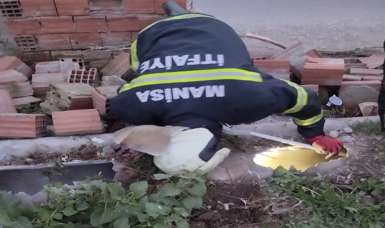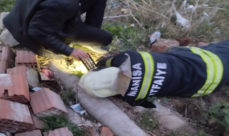 Manisa’nın Salihli ilçesinde beton elektrik direk içinde sıkışan köpek, itfaiye ekipleri tarafından kurtarıldı.