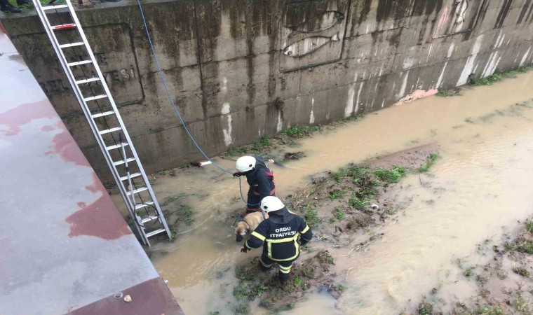 Liseler Mahallesi Tabakhane Deresine düşen köpeğin seslerinin duyan vatandaşlar 112 Acil Çağrı Merkezine bildirdi. Olay yerine gelen Ordu Büyükşehir Belediyesi Ünye İtfaiye Grup Amirliği ekipleri dere yatağına girerek merdiven yardımıyla ile köpeğin yanına kadar gitti. Kendisini kurtarmaya gelen ekiplere zorluk çıkarmayan köpek halat yardımıyla yola çıkarıldı.
