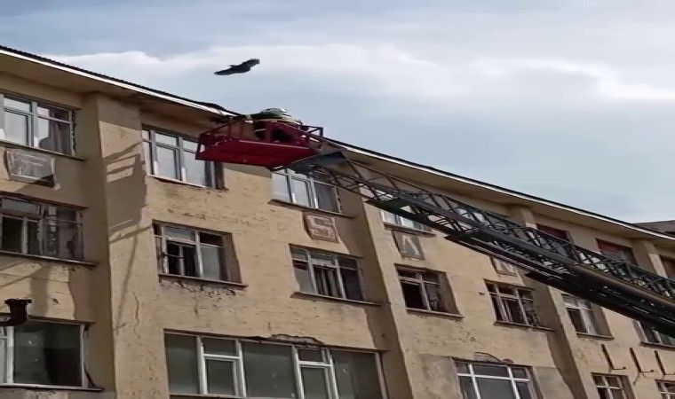Kars’ta itfaiye ekipleri çatıya takılı kalan kargayı düzenledikleri operasyonla kurtarırken, diğer kargalar itfaiyecinin asılı olan arkadaşlarına zarar vereceğini sanıp itfaiye görevlisine saldırdılar.