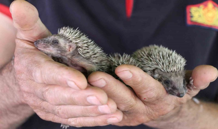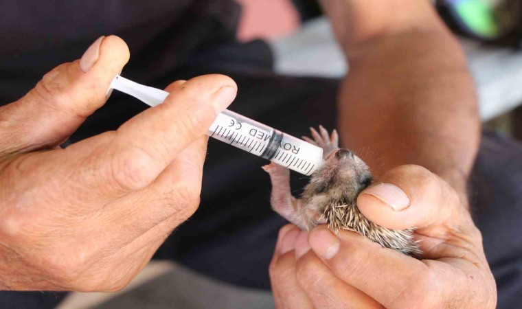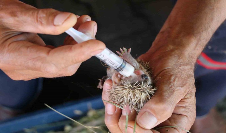 Bingöl’de yaklaşık 1 hafta önce bahçesinde ot biçen bir vatandaş, annesiz 6 kirpi yavrusuna rastladı. Durumu öğrenen Bingöl Belediyesi İtfaiye Müdürlüğünde 20 yıldır çalışan Hasip Bozkır, vatandaşla irtibata geçerek kirpi yavrularını teslim aldı. Daha sonra müdürlüğünün bahçesine getirerek kirpileri beslemeye başlayan itfaiye eri Bozkır, 1 haftadır kirpileri şırınga yardımıyla süt vererek hayatta tutmaya çalışıyor.