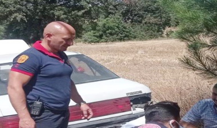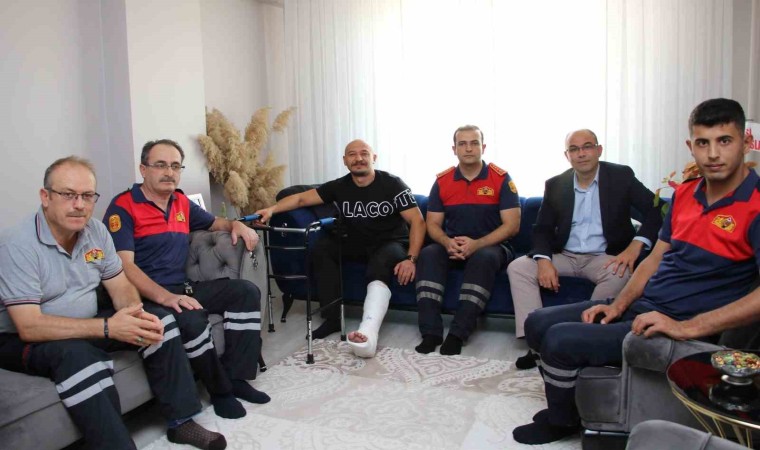 Kütahya’nın Tavşanlı ilçesinde yaşanan trafik kazası sırasında ayağı kırılan itfaiye eri, teşekkür için ziyaret edildi.