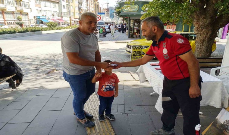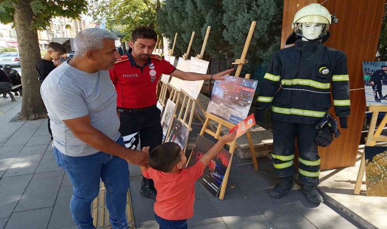Broşür dağıtımının yapıldığı Cemalettin Köklü Parkı önünde ayrıca itfaiye kıyafeti ile ekiplerin çalışmalarının yer aldığı fotoğraflar sergilendi.