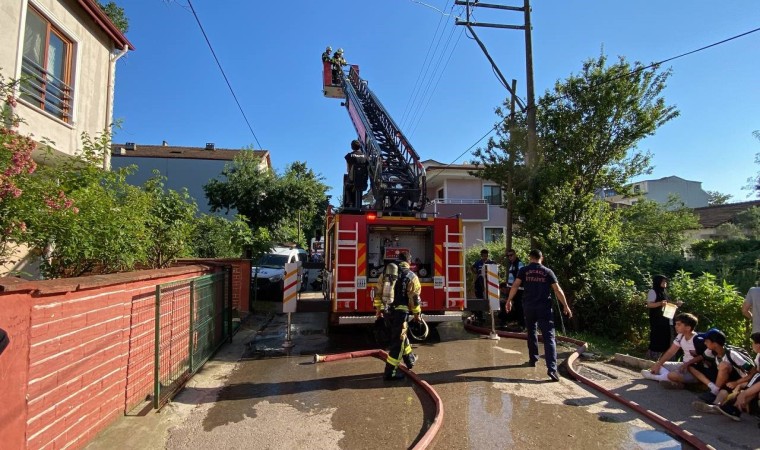 Kocaeli’nin Kartepe ilçesinde iki katlı binanın çatısında çıkan yangın itfaiye ekipleri tarafından söndürülürken, sokağa dökülen vatandaşlar meraklı gözlerle olup biteni izledi.