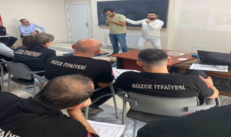 DÜZCE(İHA) – Düzce Sağlık Müdürlüğü tarafından Düzce Belediyesi İtfaiye Müdürlüğünde görev yapan itfaiyecilere temel ilk yardım eğitimi verildi.