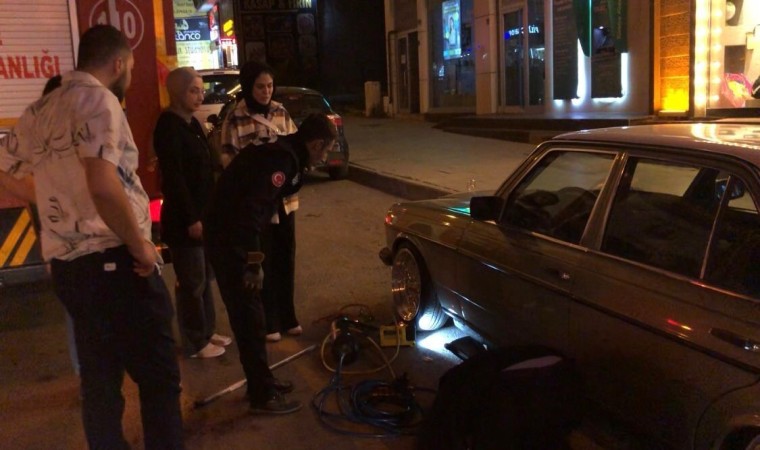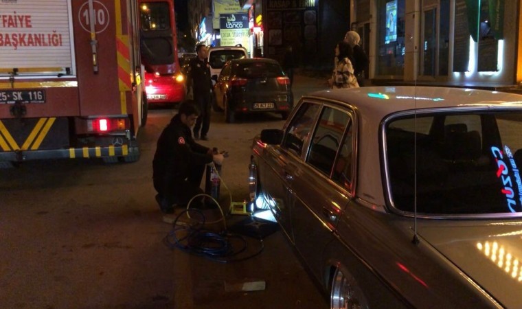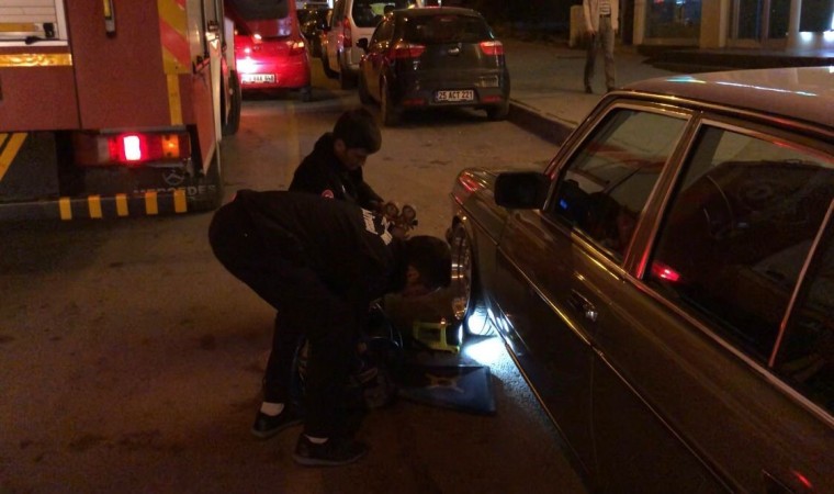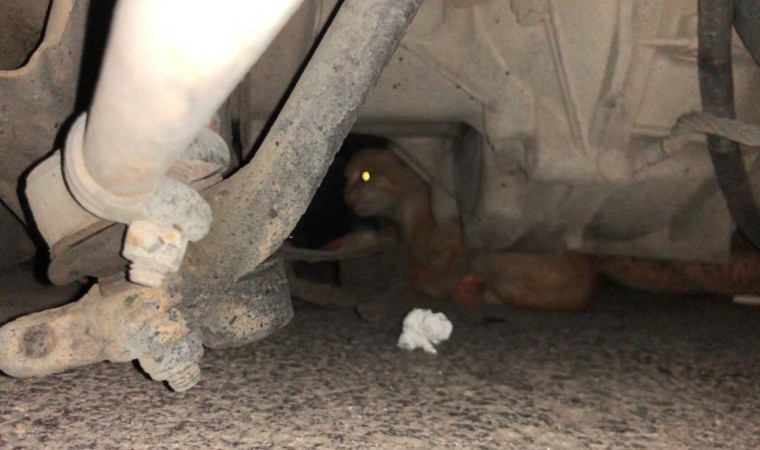 Erzurum’da bir aracın alt kısmına sıkışan kedisi yavrusunu fark eden vatandaşlar itfaiyeden yardım istedi.