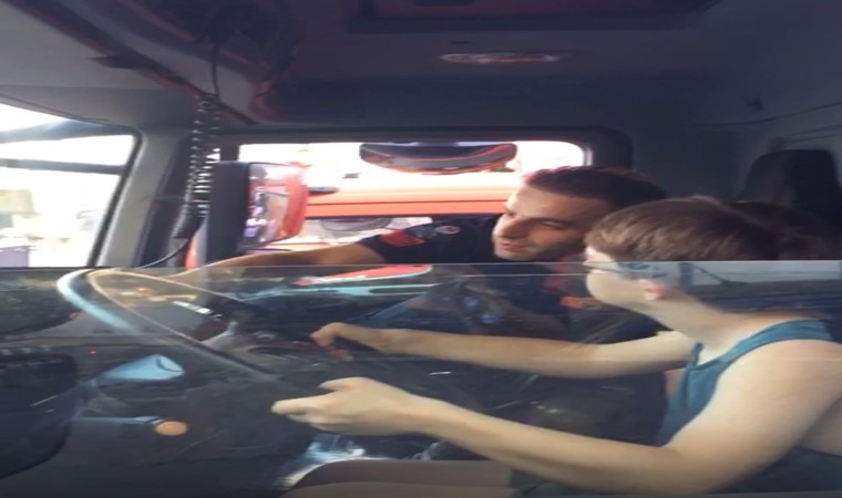 İtfaiye personeli, araç ve ekipmanlar hakkında detaylı bilgiler verdikleri Murat ile birlikte, yanan bir aracı söndürme senaryosu tatbik etti. Büyük mutluluk yaşayan özel çocuk, itfaiyeci ağabeylerine teşekkür ederek yeniden ziyarete geleceğini söyledi.