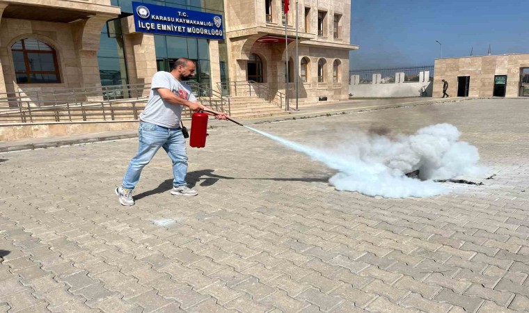 Sakarya Büyükşehir Belediyesi İtfaiye Dairesi Başkanlığı olası yangın ve afetlere karşı kurum ve firmalarda yürüttüğü eğitim ve tatbikatlara ağırlık veriyor. Özellikle kavurucu sıcakların yaşandığı yaz sezonunda yangınların önüne geçmek, yaşanabilecek yangın ve afet durumlarında müdahale bilincine sahip olunması konusunda kararlılıkla çalışan Büyükşehir İtfaiyesi, gerçekçi tatbikatlar yapıyor. Son eğitim ve tatbikat çalışması Karasu İlçe Emniyet Müdürlüğü’nde gerçekleştirildi. Teşkilat üyelerine yangın tahliyesi öğretildi, yangın tüp çeşitleri anlatıldı ve yangına ne şekilde müdahale edilmesi gerektiği gösterildi.