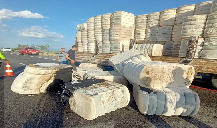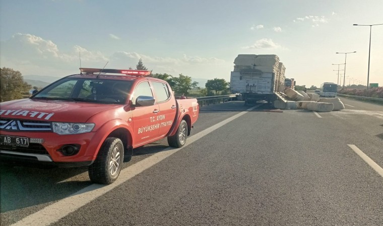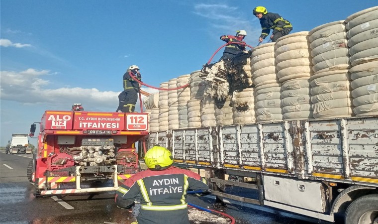 Olay, Aydın-Denizli Çevreyolu üzeri Pınardere Mevkii’nde meydana geldi. Edinilen bilgiye göre, çevre yolunda seyir halinde olan 27 AEP 908 plakalı pamuk balyası yüklü tırın dorse kısmında henüz bilinmeyen bir nedenle yangın çıktı. Dorseden dumanların çıktığını fark eden tır şoförü aracı durdurarak durumu 112 Acil Çağrı Merkezi’ne bildirdi. İhbar üzerine bölgeye itfaiye ve polis ekipleri sevk edildi. Kısa sürede olay yerine gelen Aydın Büyükşehir Belediyesi İtfaiye Daire Başkanlığı ekipleri yangına müdahale etti. Ekiplerin yoğun uğraşları sonucu alevler diğer balyalara sıçramadan kontrol altına alındı. Ekipler yangının çıkış nedeninin belirlenebilmesi için çalışma başlattı.