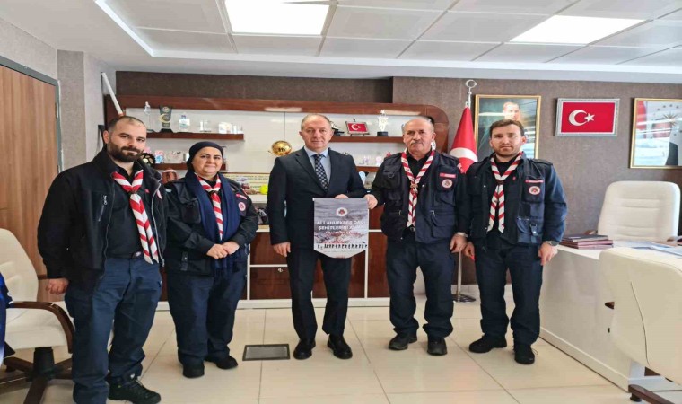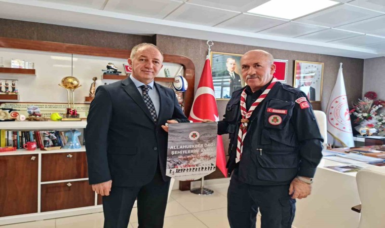 İzcilik Federasyonu Erzurum İl Temsilcisi Nuri Karslı, Gençlik ve Spor İl Müdürü Levent Çakmur’a federasyonun daha önceki senelerde Allahu Ekber Şehitlerine yaptıkları yürüyüşün simgesini taşıyan flamayı hediye etti.