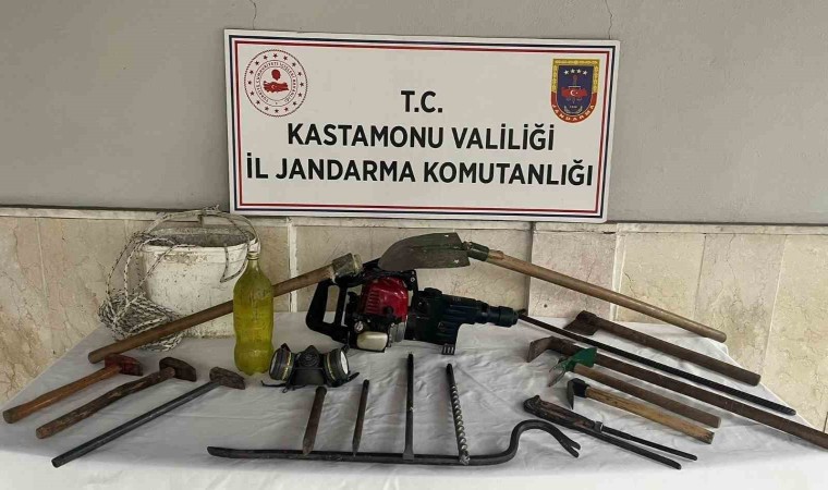 Edinilen bilgiye göre, Kastamonu İl Jandarma Komutanlığınca tarihi eser kaçakçılığının önlenmesine yönelik çalışmalarını aralıksız sürdürüyor. Bu çerçevede Kastamonu’nun Devrekani ilçesinde jandarma ekiplerince yapılan çalışmalar neticesinde B.T., A.T., Ş.M. ve A.T. isimli şahıslar, izinsiz kazı yaptıkları esnada suçüstü yakalandı. Olay yerinde yapılan aramada; hilti, hilti ucu, burç, çekiç, keser, boru anahtarı, balta, kürek, kazma, gaz maskesi ve benzin ele geçirildi.