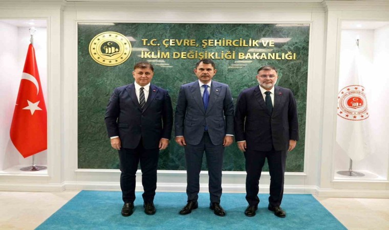 Çevre, Şehircilik ve İklim Değişikliği Bakanı Murat Kurum, makamında İzmir Büyükşehir Belediye Başkanı Cemil Tugay ile AK Parti İzmir İl Başkanı Bilal Saygılı’yı kabul etti. Başkan Tugay, ziyaretlerine ilişkin sosyal medya hesabından yaptığı açıklamada İzmir Körfezi’nde son haftalarda yaşanan çevre sorunları ile ilgili Ankara’da temasta bulunduklarını belirtti. Başkan Tugay, "Bugün Çevre, Şehircilik ve İklim Değişikliği Bakanı Sayın Murat Kurum’la görüştük. Toplantıya AK Parti İzmir İl Başkanı Sayın Bilal Saygılı, Bakan Yardımcısı Sayın Fatma Varank ve Çevre Yönetimi Genel Müdürü Sayın Fatih Turan da eşlik etti. Görüşmemizin ağırlıklı konu başlığı İzmir Körfezi’nde son haftalarda yaşadığımız çevre sorunları oldu. Büyükşehir Belediyemizin ve bakanlığımızın yapması gerekenleri masaya yatırdık. Belediye olarak bakanlığımızdan beklentilerimizi dile getirdik. Yaşanan durumla ilgili olarak yaptığımız karşılıklı durum değerlendirmesinde bakanlık yetkilileri, bilim insanlarımız ve belediyemizin ortak yürüteceği bir süreçte kurumlar arası işbirliği ile çizilecek yol haritasını özenle takip etme konusunda bir fikir birliği ortaya çıktı. Sayın bakanımızın konuya güven verici bir duyarlıkla yaklaştığını görmekten büyük bir memnuniyet duyduğumu ifade etmek isterim. Ayrıca AK Parti İzmir İl Başkanı Sayın Bilal Saygılı’ya bu süreçte ortaya koyduğu sağduyu ve katkıdan dolayı teşekkür ediyorum. İzmir’in sorunlarını çözmek için ilgili tüm kurumlarımızla işbirliği ve ortak çözüm arayışımız devam edecek. İzmir Büyükşehir Belediyesi olarak sorunların çözümü için her zaman üzerimize düşeni yapmaya devam edeceğiz" dedi.