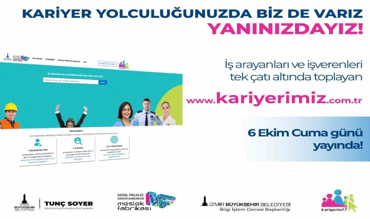 İzmir Büyükşehir Belediyesi kentteki istihdam oranını artırmak için önemli bir adım daha attı. İşveren ile iş gücünü bir araya getirmek için www.kariyerimiz.com.tr adlı site kurdu. Kentin kariyer sitesi İzmir Büyükşehir Belediye Başkanı Tunç Soyer’in 6 Ekim Cuma günü Tarihi Havagazı Fabrikası’nda yapacağı tanıtım toplantısının ardından hizmete sunulacak.
