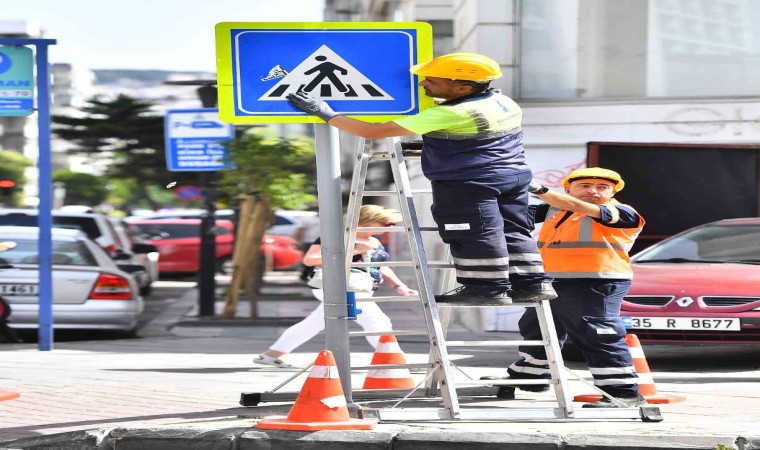 İzmir Büyükşehir Belediyesi, yaya ve yolcu güvenliği için çalışmalarını sürdürüyor. İzmir Büyükşehir Belediyesi Ulaşım Dairesi Başkanlığı Trafik Hizmetleri Şube Müdürlüğü’ne bağlı Mürselpaşa Trafik Hizmetleri Yerleşkesi’nde bulunan atölyede, trafik levhası üretimi yapılıyor. İzmir il sınırları içinde, Karayolları sorumluluk alanlarındaki yollar hariç 30 ilçe ve köy yollarına yeni levha takılıyor ya da eskiyenler değiştiriliyor. Yurttaşlar, muhtarlar, kamu kurum ve kuruluşlarından gelen talepler de değerlendirilerek üretim yapılıyor. Trafik Hizmetleri Şube Müdürlüğü ekipleri ayda bin 250, yılda ise 15 bin levha montajı yapıyor.