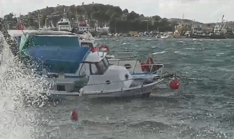İzmir’in Foça ilçesinde etkili olan fırtına, bazı balıkçı teknelerini batırdı, rüzgar nedeniyle denizdeki dalga boyu metreleri buldu.
