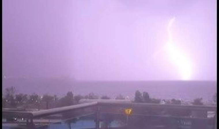 İzmir Körfezine yıldırımın düştüğü anlar ise bir vatandaş tarafından cep telefonu kamerası ile görüntülendi.