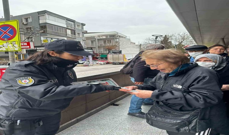 İzmir’in Buca ilçesinde polis ekipleri vatandaşları hem dolandırıcılara ve hırsızlara karşı uyardı hem de ‘kadın acil destek sistemi (KADES)’ uygulaması projeleri kapsamında bilgilendirme çalışması yaptı.