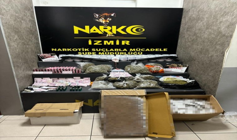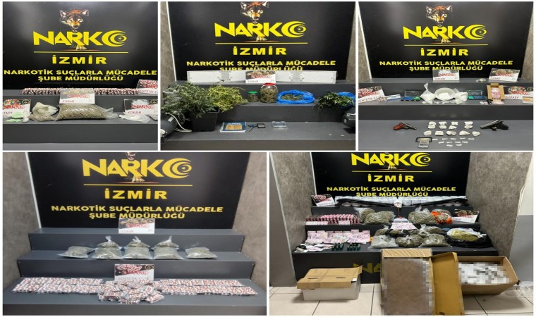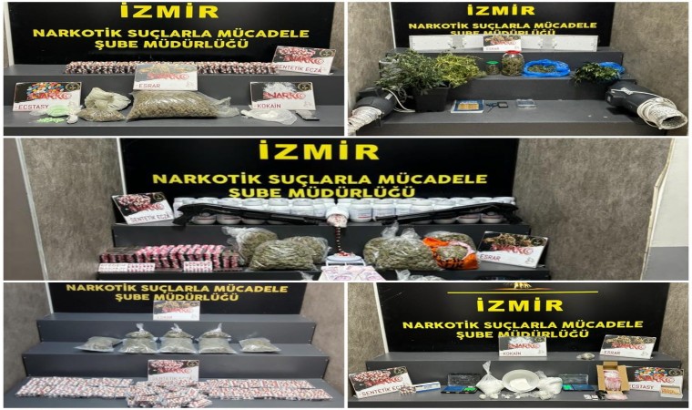 İzmir’in 5 ilçesinde, 5 adrese ve 3 araca yönelik polis operasyonunda 34 bini aşkın sentetik ecza maddesinin yanı sıra çeşitli miktarlarda uyuşturucu maddeler ele geçirildi. Olaylarla ilgili gözaltına alınan 8 şüpheli çıkarıldıkları mahkemece tutuklandı.