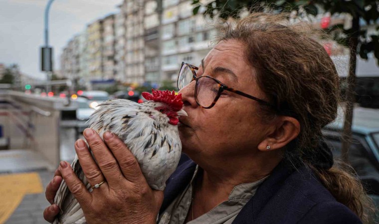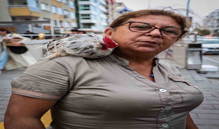 İzmir’de yaşayan 64 yaşındaki Hatice Suner, 9 ay önce gurktan çıkardığı İsveç cinsi ‘Bıdık’ isimli horozunu omzuna alarak İzmir sokaklarını karış karış geziyor. Her yere birlikte gittiklerini belirten Suner, “Kendim çıkardım gurktan. Civcivken koynumda büyüttüm, evde bakıyorum. İsveç cinsi ufak bir horoz, bu kadar büyüyor. Başka hayvanlarım da var ama bu böyle özel çıktı” dedi.