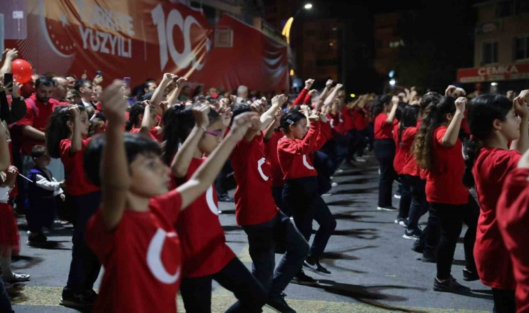 Öte yandan, Cumhuriyetin 100. yılı nedeniyle gerçekleşen etkinlikler çerçevesinde, ENKA Spor Salonu önünde bir araya gelen küçükten büyüğe on binlerce Aliağalı, kortej yürüyüşüne katıldı. Vatandaşlar; ellerinde meşaleler, Türk bayrakları ve dev Atatürk posterleri ile belediye bandosunun Cumhuriyet marşları eşliğinde yürüdü. Kimi vatandaşlar da evlerinin balkon ve pencerelerine çıkarak ellerindeki Türk bayraklarıyla 100. yıl coşkusuna ortak oldu. Atatürk Zeybek Anıtı önünde gerçekleştirilen folklor gösterisiyle, yapay zeka kullanılarak Mustafa Kemal Atatürk’ün sesinden dinletilen ‘İki Keklik’ türküsü kalabalıktan büyük alkış aldı.