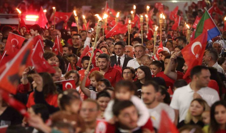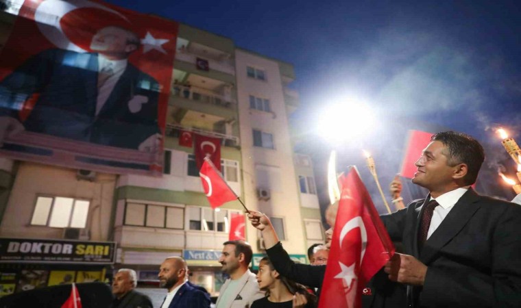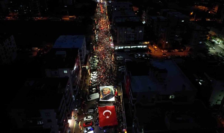 Metrelerce uzunluktaki korteje; Aliağa Kaymakamı Zekeriya Güney, Aliağa Belediye Başkanı Serkan Acar, Garnizon Komutanı Albay Faruk Altun, Aliağa Cumhuriyet Başsavcısı Mehmet İmir, belediye meclis üyeleri, siyasi parti yöneticileri, sivil toplum kuruluşları ile Aliağalılar katıldı. Kortejin Avcı Ramadan Çocuk Oyun ve Rekreasyon Alanına varmasıyla birlikte gerçekleştirilen tekne gösterileri ilgiyle izlenirken, ay yıldızlı köprüde yakılan meşaleler geceyi aydınlattı.