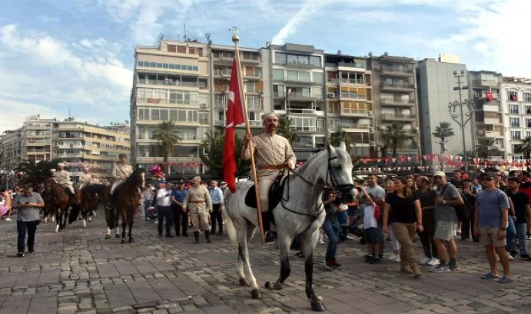 İzmir’in düşman işgalinden kurtuluşunun 101’inci yıldönümü için düzenlenen kutlama programı Cumhuriyet Meydanı’ndan Gündoğdu Meydanı’na atlı süvari birliklerinin yürüyüşü ile devam etti. Kurtuluş günü etkinlikleri kapsamında saat 18.00 sıralarında hava gösterileri başladı. Gündoğdu Meydanı SoloTürk ve Türk Yıldızları'nın hava gösterisine ev sahipliği yaptı. SoloTürk'ün gösterisi, İzmir'deki 9 Eylül gösterilerinin en ilgi çeken programlarından biri oldu. Her yaştan İzmirli gösterileri büyük bir keyifle izledi. Cep telefonları ile o anları kaydeden vatandaşlar, gösteri yapan uçakların alçalmasıyla heyecan dolu anlar yaşadı. İzmir’in pek çok yerinden görülebilen gösteri 75 dakika sürdü. (DHA)