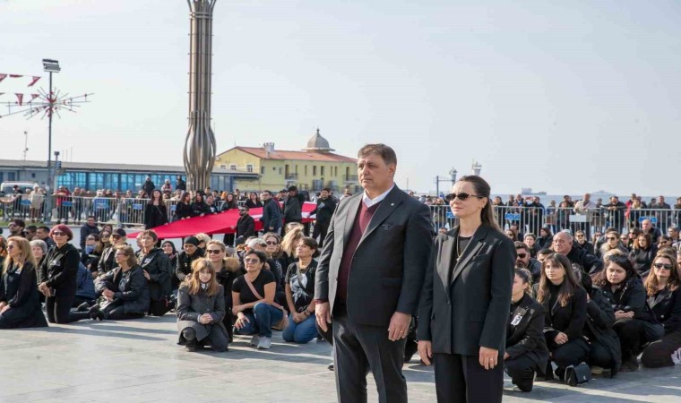 Ulu Önder Gazi Mustafa Kemal Atatürk’ü büyük bir özlemle andıklarını söyleyen İzmir Büyükşehir Belediye Başkanı Cemil Tugay, “Bir ulus düşünün tam 86 yıldır aynı gün, aynı saatte sirenler eşliğinde ölen. Bir ulus düşünün tam 86 yıldır aynı gün yeniden doğan. Bir ulus düşünün sonsuza kadar yaşayacak olan. Bir lider düşünün ’Benim naçiz vücudum elbet bir gün toprak olacaktır ancak Türkiye Cumhuriyeti ilelebet payidar kalacaktır’ diyen. Yaşadığı kısacık hayatta ulusunun payidar kalması için bir liderin yapabileceği en muhteşem şeyleri yapan. Bir lider düşünün, dünyanın tüm mazlum milletlerine ilham olan. Sensizliğin 86. yılında kurduğun cumhuriyetin fikri hür, vicdanı hür evlatları olarak bizler sonsuz hatıratının huzurunda tarifsiz bir özlemle duruyoruz” dedi.